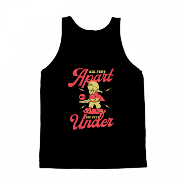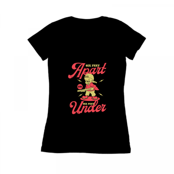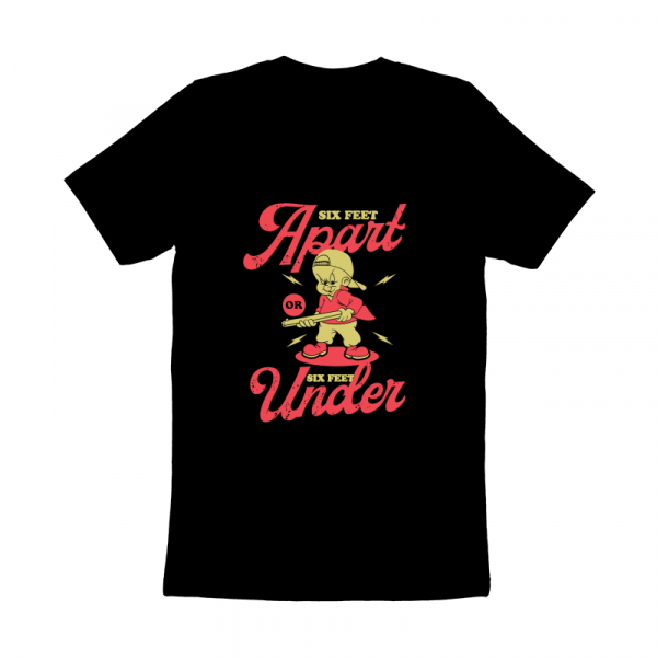 This design “six feet apart” is made in Adobe Ilustrator is ready for print.