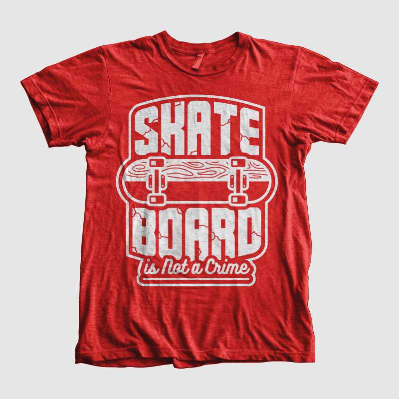 "Skate board" typography style. This design use 1 colours on red t-shirt. it is high quality vector format, easy for editing process, available for Adobe Illustrator, and Corel Draw and can be used for digital printing and screenprinting.