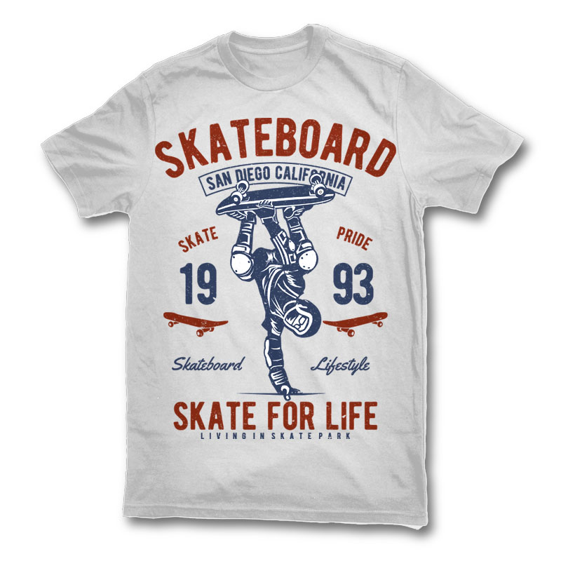 Skate For Life Tshirt Design Template based on vector files , such as AI and CDR also with PSD separated Layers file, the design has 2 color print, it can be used for digital printing and screen printing.