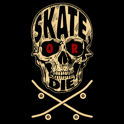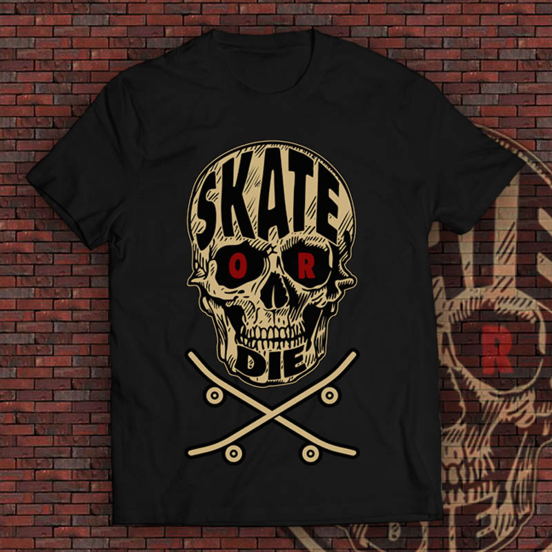 SKATE OR DIE illustration, Available in AI, CDR and PNG, With a large resolution and can be accessed with AI and CDR. File design will be available in Adobe Illustrator, Corel Draw and PNG. Editable in Adobe illustrator and CDR only.