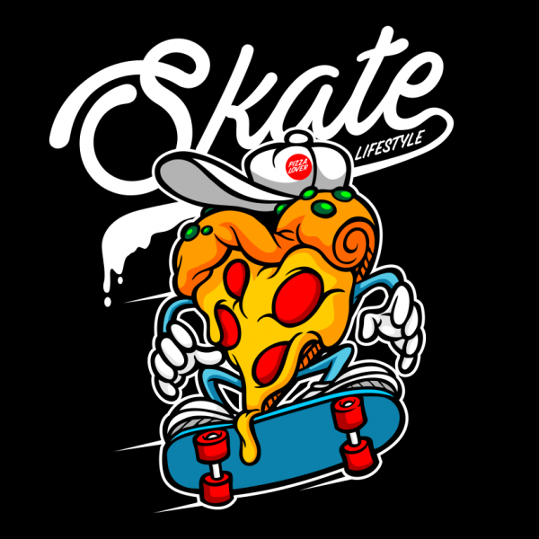 The title of Skate Pizza , EPS and PNG files, cartoon character design is very cool for street wear style. suitable for children or teenagers. Ready to print, easy to change color.Enjoy