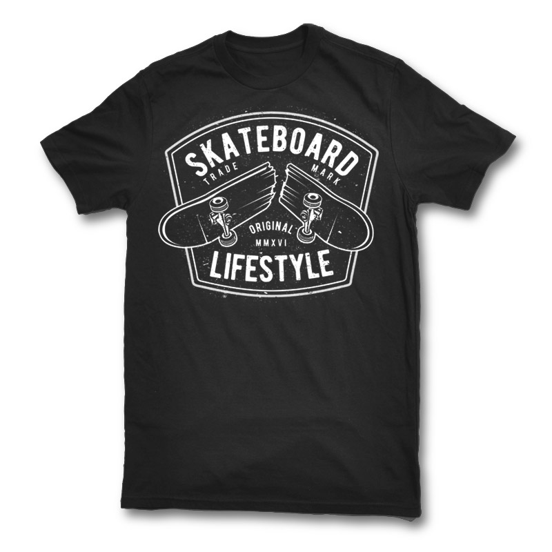 Skateboard Life style Tshirt Design Template based on vector files , such as AI and CDR also with PSD separated Layers file, the design has 1 color print, it can be used for digital printing and screen printing.