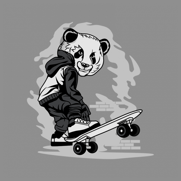 vector illustration of SKATEBOARD PANDA CARTOON, this image is very cute for t-shirts and posters, this design is available in the form of files, CDR, AI, transparent backround PNG, JPEG, SVG, EPS, mookup not included