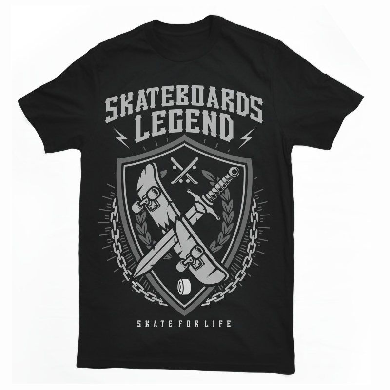 Skateboards Legend T-shirt design template with CorelDraw or Adobe Illustrator 2 colour print, CDR,AI,PSD separated Layers. Can be used for digital printing and screen printing.