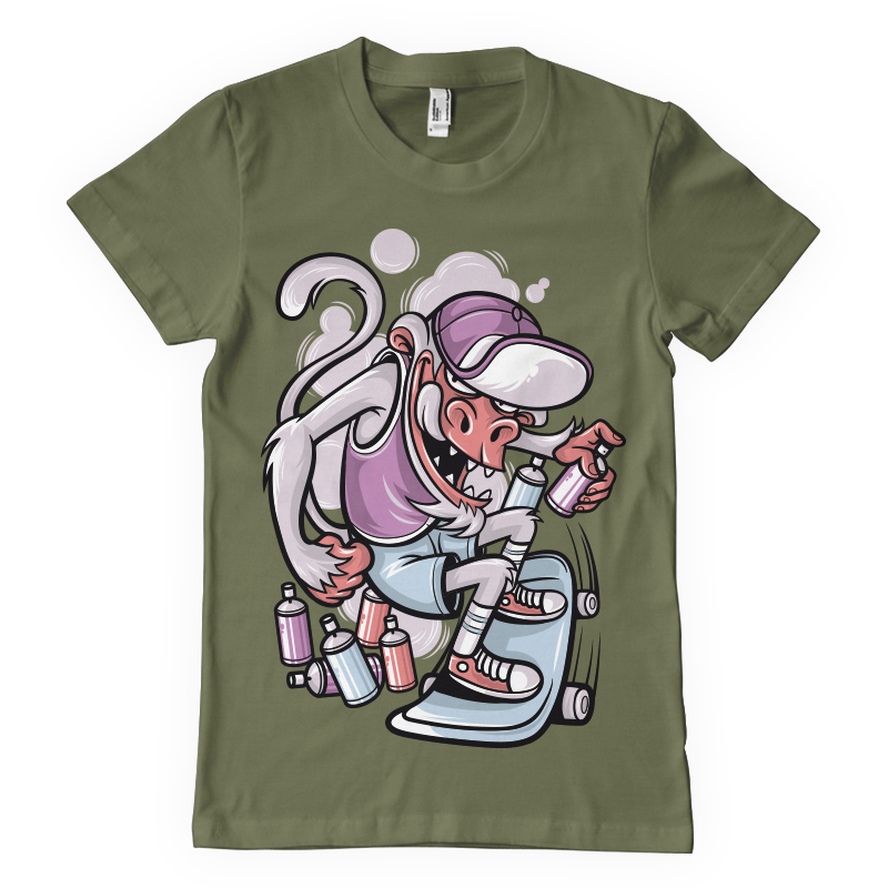 "Skater Monkey" T-shirt design featuring a monkey skating. The files available are suitable for Adobe Illustrator, Adobe Photoshop and Corel Draw and can be used for digital printing and screenprinting.