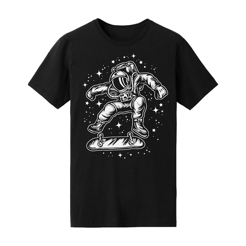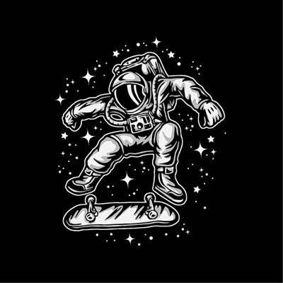 Skater of space design with Adobe Illustrator. Separated layers with 2 colors, format files are AI,EPS,PDF,PNG with 300 dpi high resolutions. Easy to used for digital printing and screen printing.