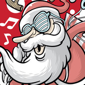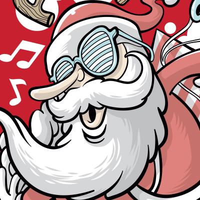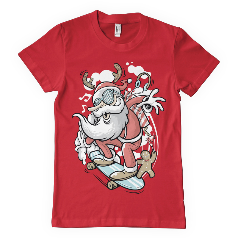 "Skater Santa" T-shirt design featuring Santa Claus skating. The files available are suitable for Adobe Illustrator, Adobe Photoshop and Corel Draw and can be used for digital printing and screenprinting.