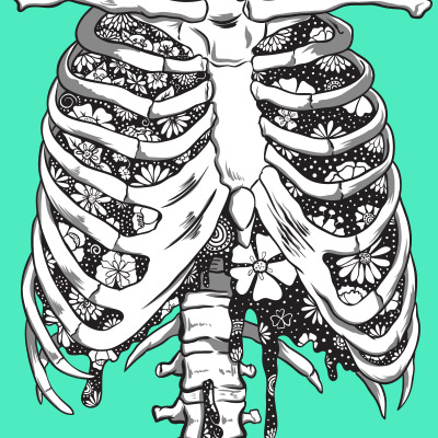 Skeleton with flowers T-Shirt Design. Digital illustration of featuring detailed flowers inside a skeleton.The colors are changeable. The source file is available in AI, EPS, PNG, PSD and SVG format.