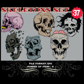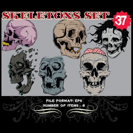 Skeletons Sets are some of our favorite vectors, bound to make an impression on you. The skull is a symbolic reminder that we are all mortal and we should live our life to the fullest accepting our fate with dignity. Often combined with a variety of other design elements such as wings, crosses, ribbons or flames, these designs are here to guide you towards innovative ways.