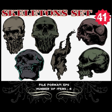 Skeletons Sets are some of our favorite vectors, bound to make an impression on you. The skull is a symbolic reminder that we are all mortal and we should live our life to the fullest accepting our fate with dignity. Often combined with a variety of other design elements such as wings, crosses, ribbons or flames, these designs are here to guide you towards innovative ways.