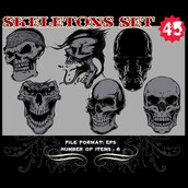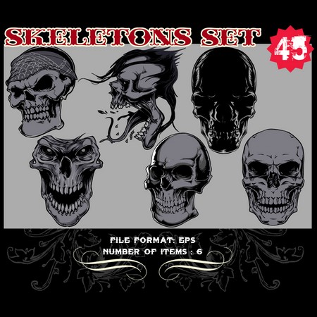 Skeletons Sets are some of our favorite vectors, bound to make an impression on you. The skull is a symbolic reminder that we are all mortal and we should live our life to the fullest accepting our fate with dignity. Often combined with a variety of other design elements such as wings, crosses, ribbons or flames, these designs are here to guide you towards innovative ways.