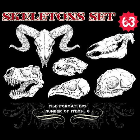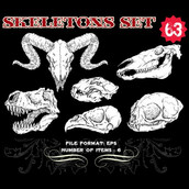 Skeletons Sets are some of our favorite vectors, bound to make an impression on you. The skull is a symbolic reminder that we are all mortal and we should live our life to the fullest accepting our fate with dignity. Often combined with a variety of other design elements such as wings, crosses, ribbons or flames, these designs are here to guide you towards innovative ways.