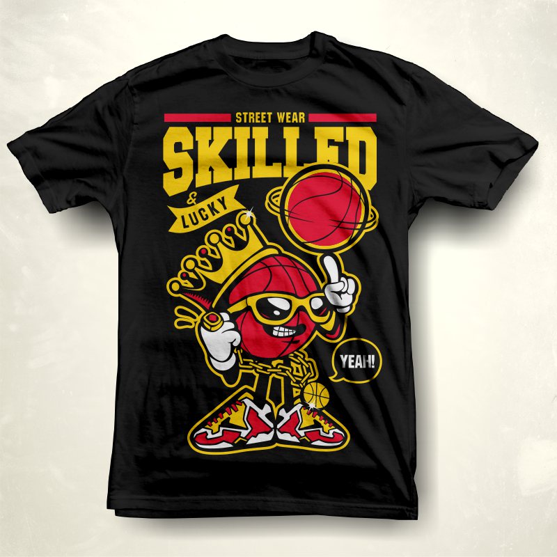 "Skilled" Basketball character style T-shirt design.The files available are suitable for Adobe Illustrator, Pdf and Corel Draw and can be used for digital printing and screen printing.