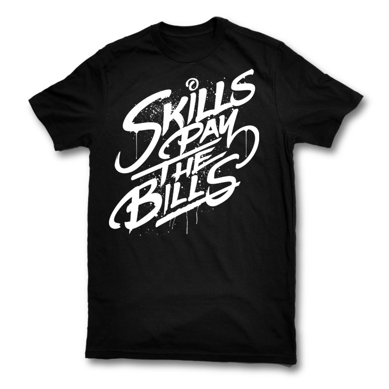 Skills Pay The Bills Typography Design created with CorelDraw .1 colour print, AI, CDR, PSD File separated Layers. Can be used for digital printing and screen printing.
