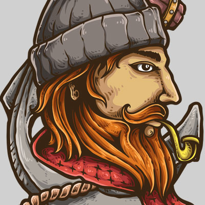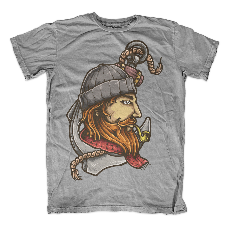 Vector illustration of ship captain smoking with anchor background in a vintage tattoo style. Ready to print on t-shirt.