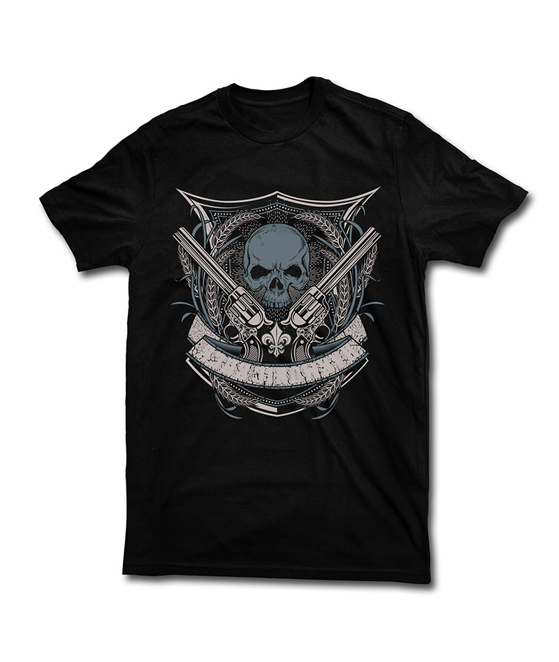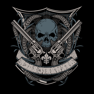 Skull and gun, also i see the shield on behind, use grunge effect on design.