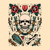 This design is suitable for merchandising purposes, as well as old-school themed t-shirts and clothing or tattoo culture.