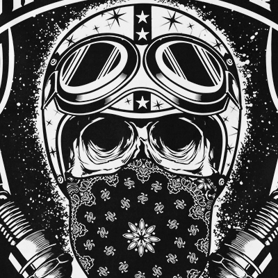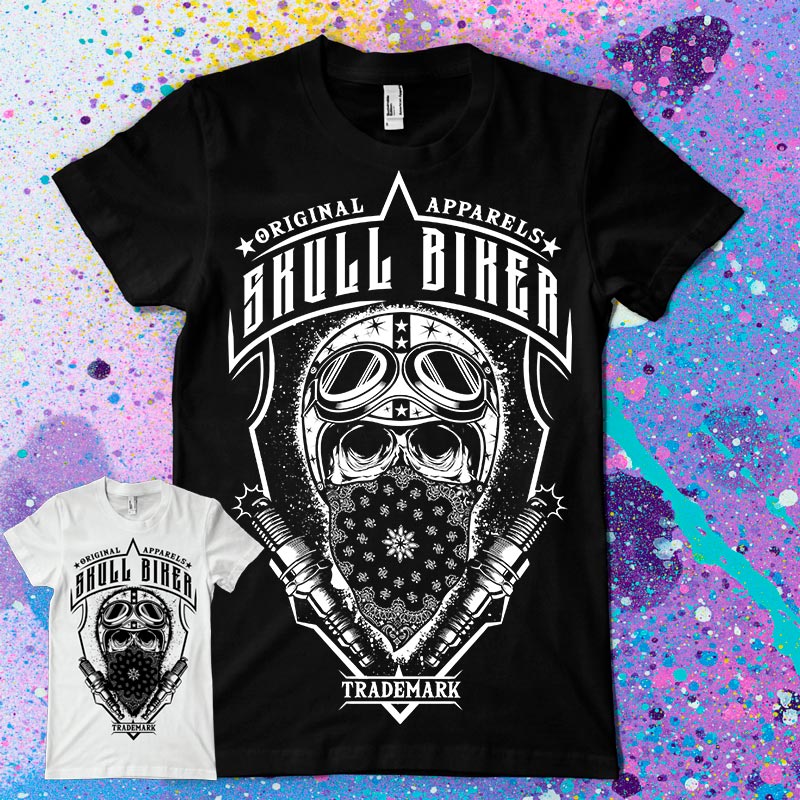 Skull Biker t-shirt design features a Motorcycles design detailed screen print now available for Adobe Illustrator, Adobe Photoshop and can be used for digital printing and screenprinting.
