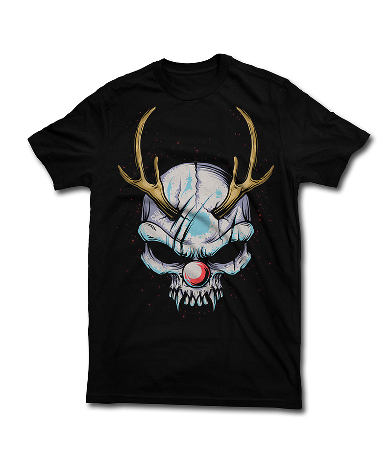 Vector illustration of Skull. For Christmas edition, skull with clown nose and deer horn.
