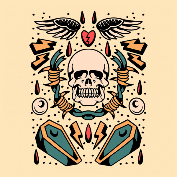 skull coffin tattoo flash