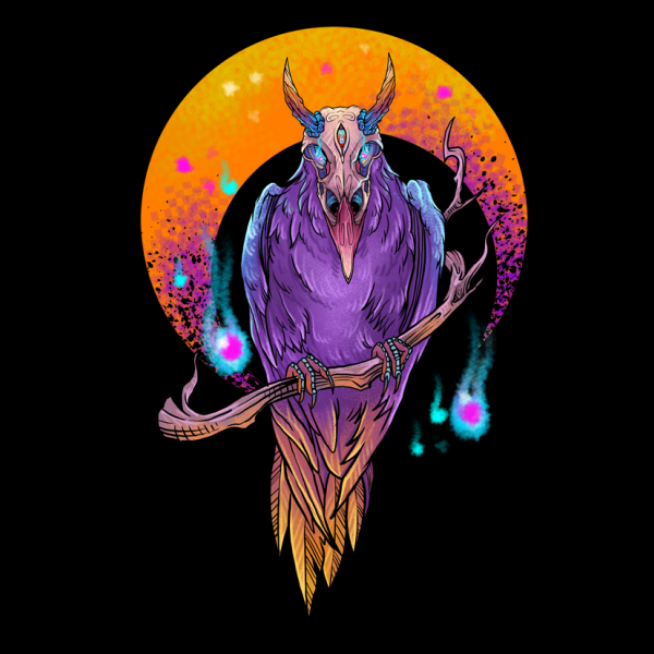 Skull crow design is an illustration design. These files include PSD and PNG with a transparent background. Perfect for digital printing and screen printing.