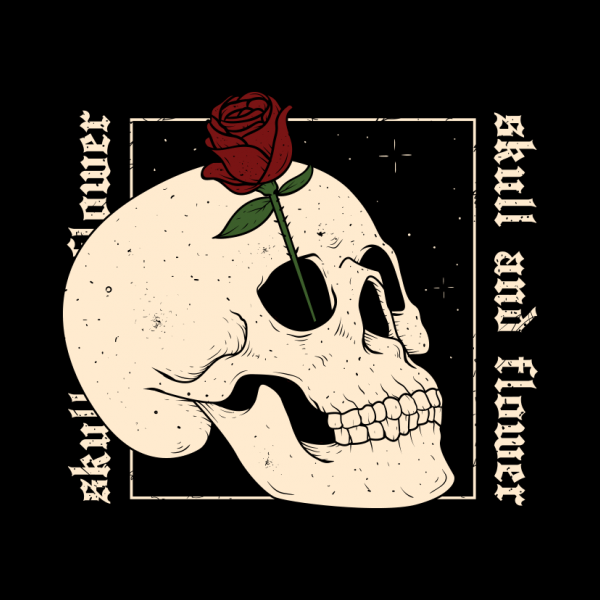 SKULL FLOWER illustration artwork,4 color include . Separated color by layer. This design is suitable for BLACK colours ONLY . Format AI,EPS,PNG file.