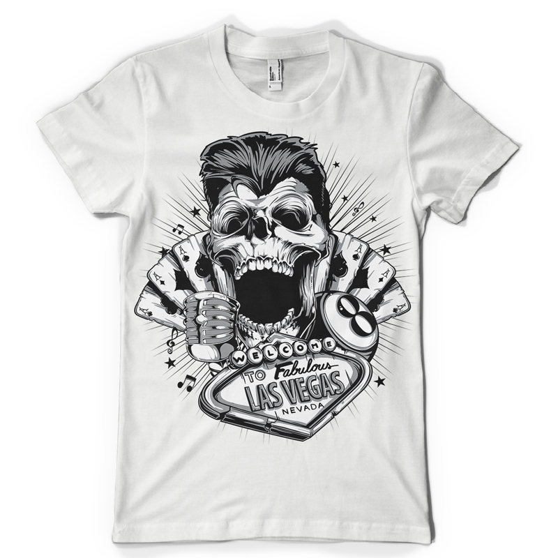 Skull Greaser t-shirt design features a detailed screen print of skull gambler now available for Adobe Illustrator, Adobe Photoshop and Corel Draw and can be used for digital printing and screenprinting .