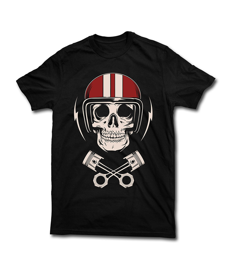 Skull wearing helmet with cross piston on bottom