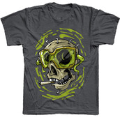 Skull hero illustration.T-shirt design featuring a cartoon character. The file is suitable for Adobe Photoshop and can be used for digital printing and screenprinting.