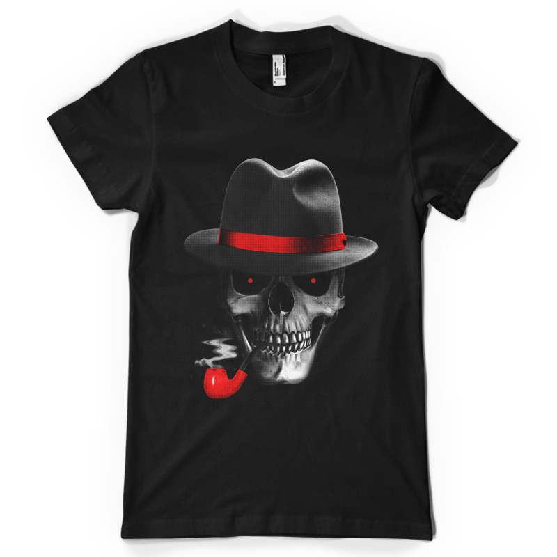 "Skull Mafia" is a unique illustration of a skull with a smoke pipe and wearing a mafia hat. This design consists of only 2 colors which is easier on printing and can be printed on any colors. File contains a PSD file with 17x 24 in size with 300 in dpi.