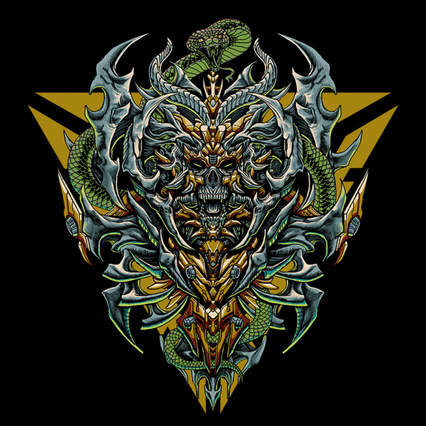 I present a skull illustration with a robot and mecha theme, which makes it very unique and will definitely be very cool if you wear the t-shirt, please try it, thank you