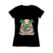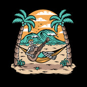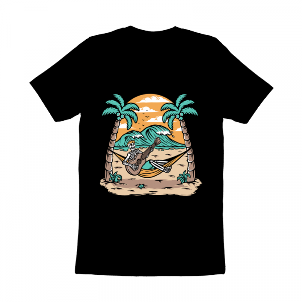 Skull playing guitar on the beach