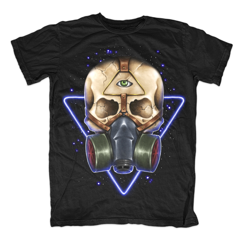 Illustration of skull wear gask mask with triangle background and space. Ready to print on t-shirt.