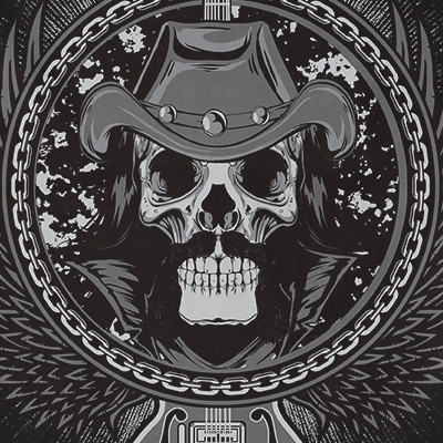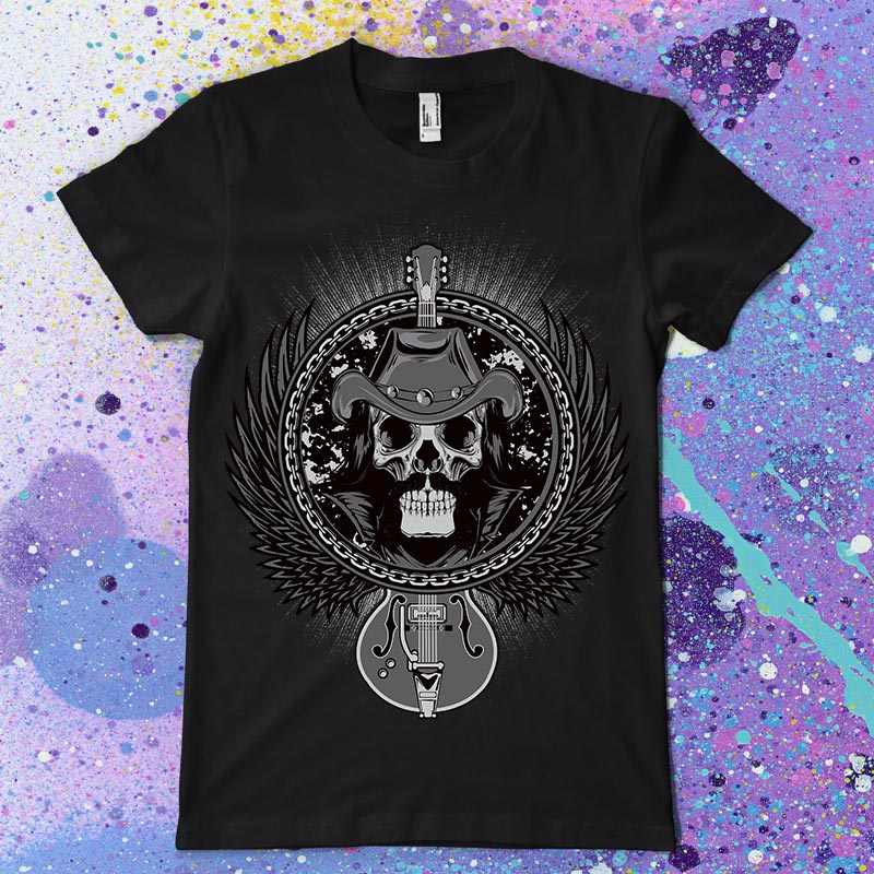 Skull Rock t-shirt design features a rock design detailed screen print now available for Adobe Illustrator, Adobe Photoshop and can be used for digital printing and screenprinting.