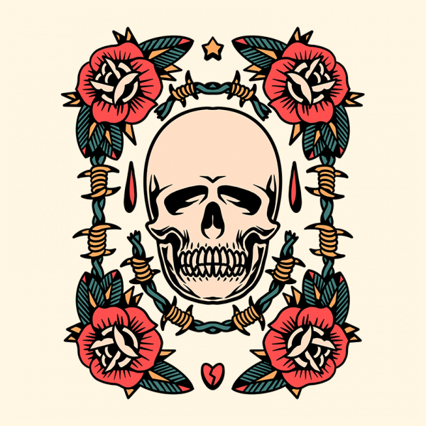 skull rose tattoo flash