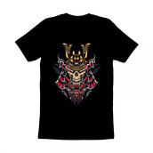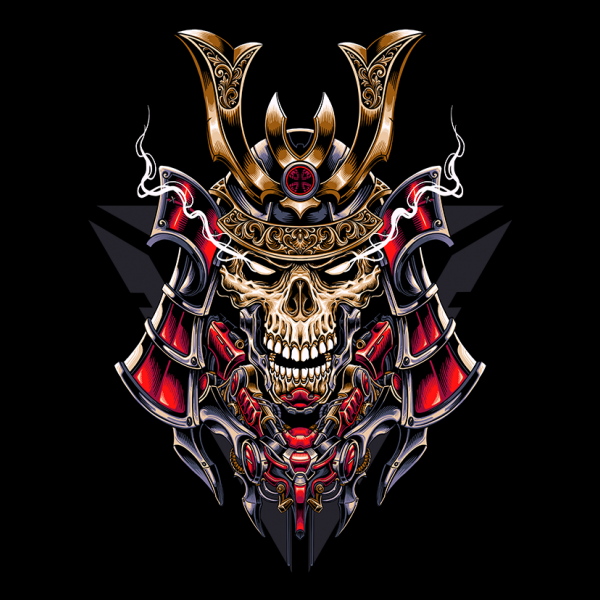 I present an illustration of a samurai skull with a robot and mecha theme, which makes it very unique and will definitely be very cool if you wear the t-shirt, please try it, thank you