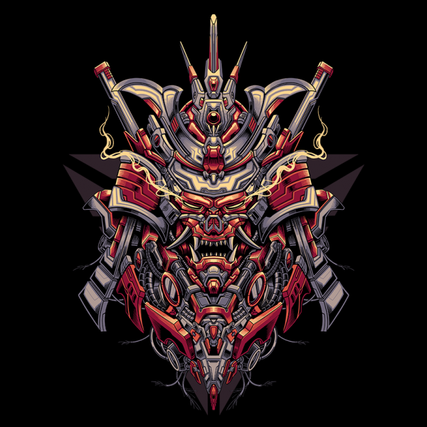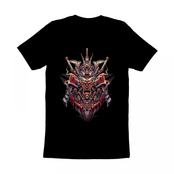 I present an illustration of a samurai skull with a robot and mecha theme, which makes it very unique and will definitely be very cool if you wear the t-shirt, please try it, thank you