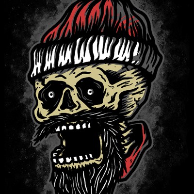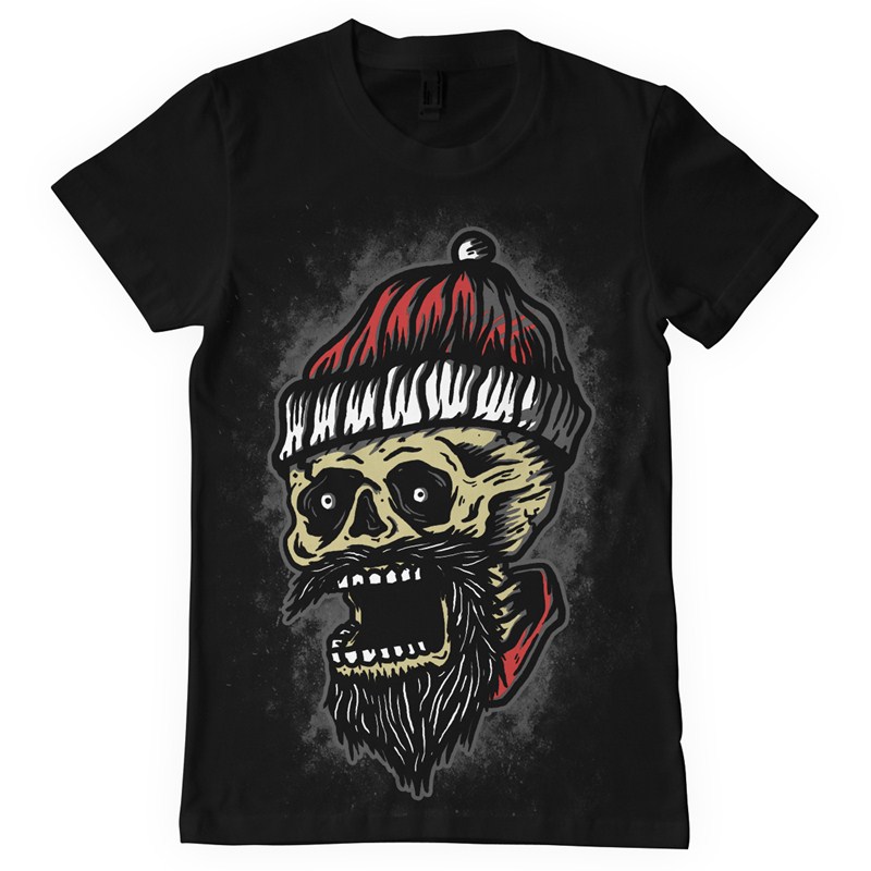 Skull santa T-shirt design template with Adobe Photoshop 4 colour print. You can add text. The design can be used for digital printing and screen printing.