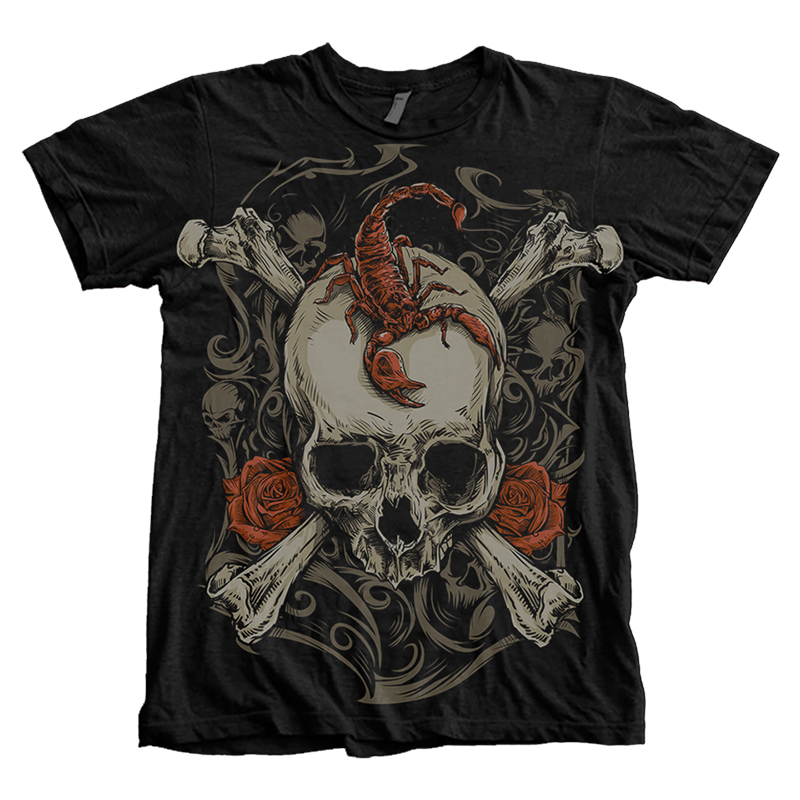 Tittle " skull scorpion" .Design is my original hand draw. inking and coloring used with Photoshop process.6 layer color and high resolution format. can print on any color t shirt .Enjoy!!
