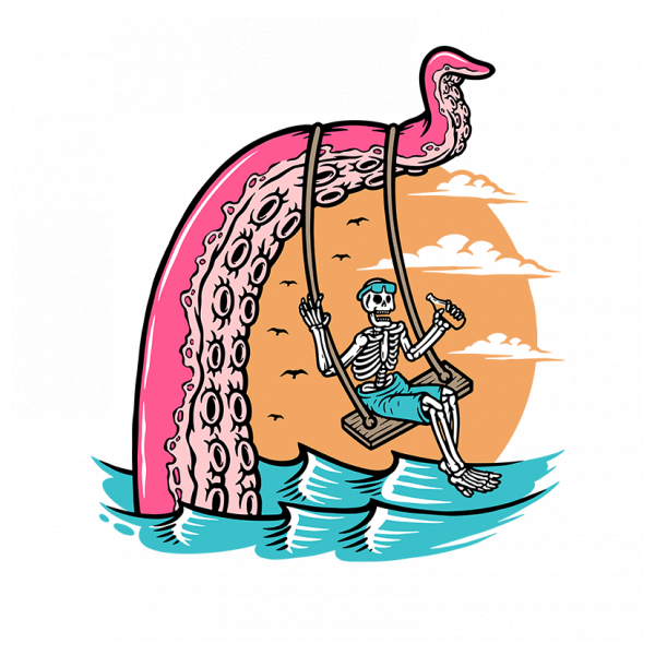 skull swinging with giant octopus