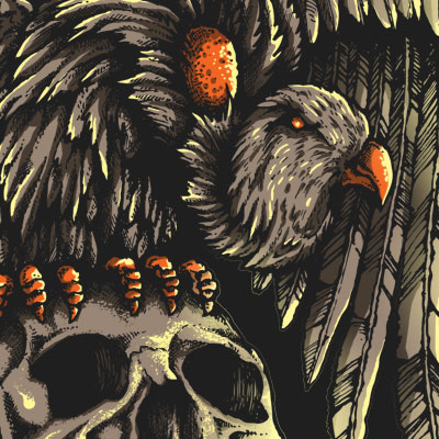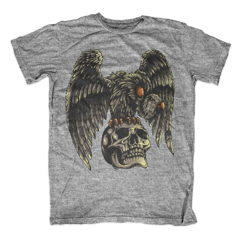 Illustration of skull and vulture bird with tattoo loking style. Ready to print on t-shirt.