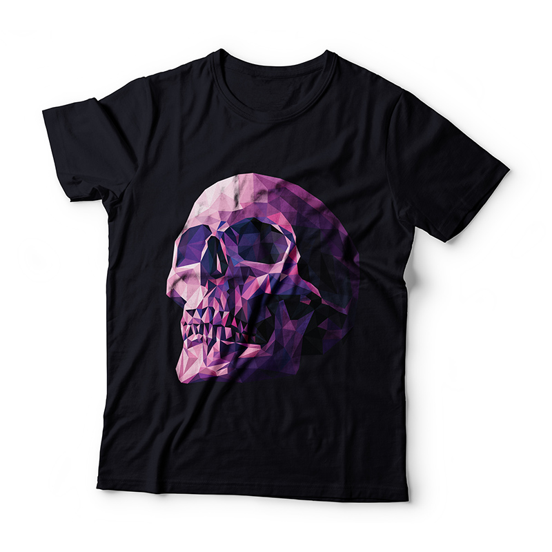 T-shirt design in polygon style. The file is available in AI and PNG format and can be accessed with the Adobe Photoshop and Illustrator softwares. Can be used for digital printing.