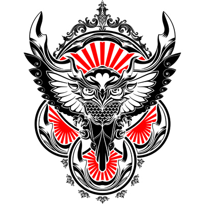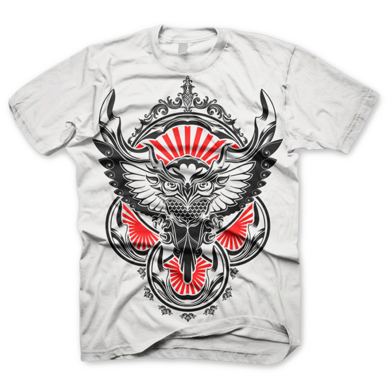 "skullief 3 " is a unique illustration of a fly owl with some carving ornamen... inspired from carving furnitures art character at my country jepara central java...it was be the identity of my country...the real of course,with use fresh orange and white colors, so traditional...but still look cool,modern, and cute if in wearing on a shirt . FIle contains a PSD file