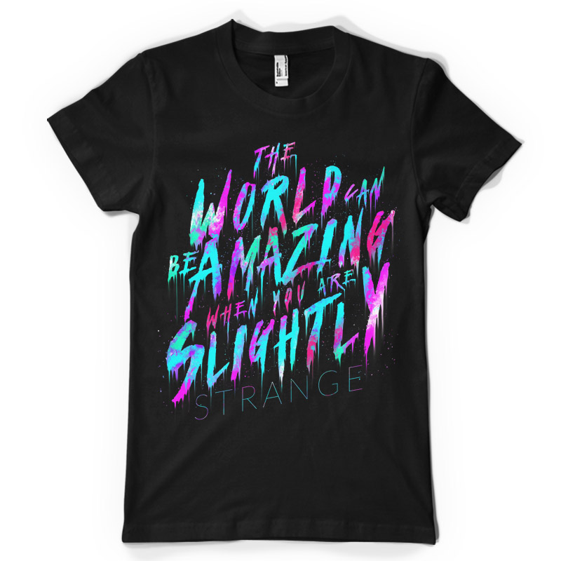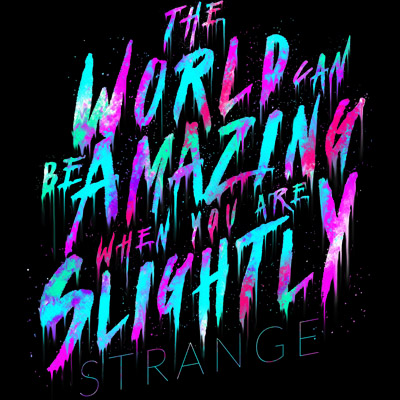 "The World Can Be Amazing When You Are Slightly Strange". A unique Typography using neon bright colors to make it pop out on Prints. File contains a PSD file with 17x24 in size with 300 in dpi.