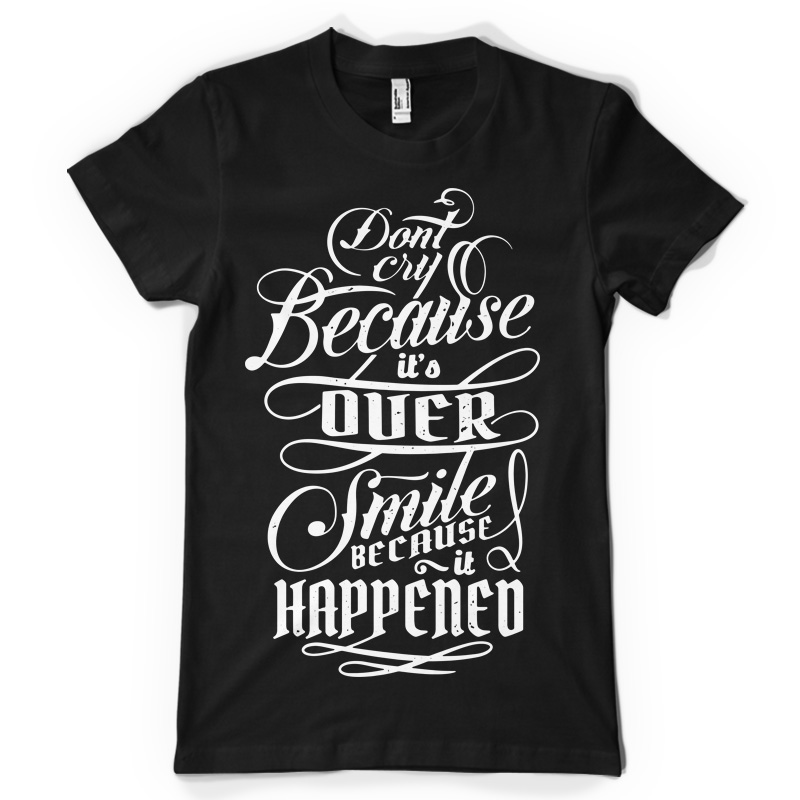 "Smile" T-shirt design featuring typography style quote, with distressed details. The files available are suitable for Adobe Illustrator, Adobe Photoshop and Corel Draw and can be used for digital printing and screenprinting.