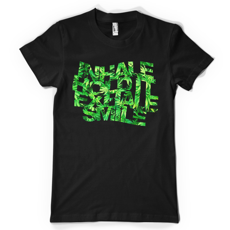 "Inhale. Hold it. Exhale. Smile." is a typography of a famous Weed quote paired with weed plants at the background making it more eye-catching because of its colors. File contains a PSD file with 17x24 in size with 300 in dpi.