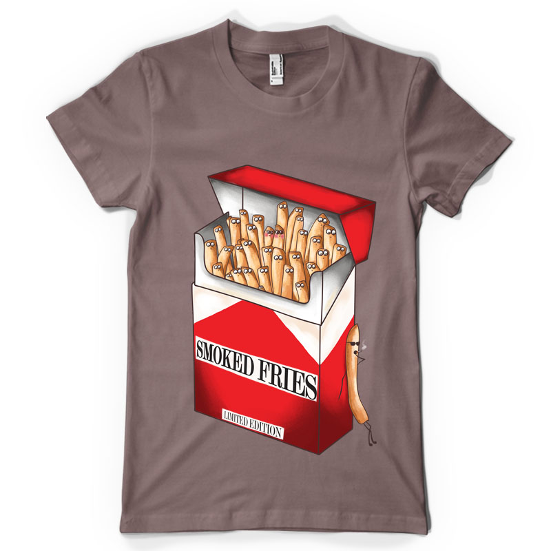 Smoked fries is an illustration made in Adobe Illustrator and Adobe Photoshop,featuring a cigarettes pack full of fries.It can be used on digital printing,screen printing and T-shirt design and it is available in PSD and PNG format file.