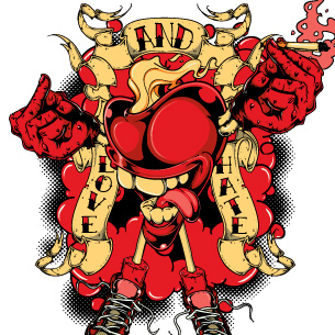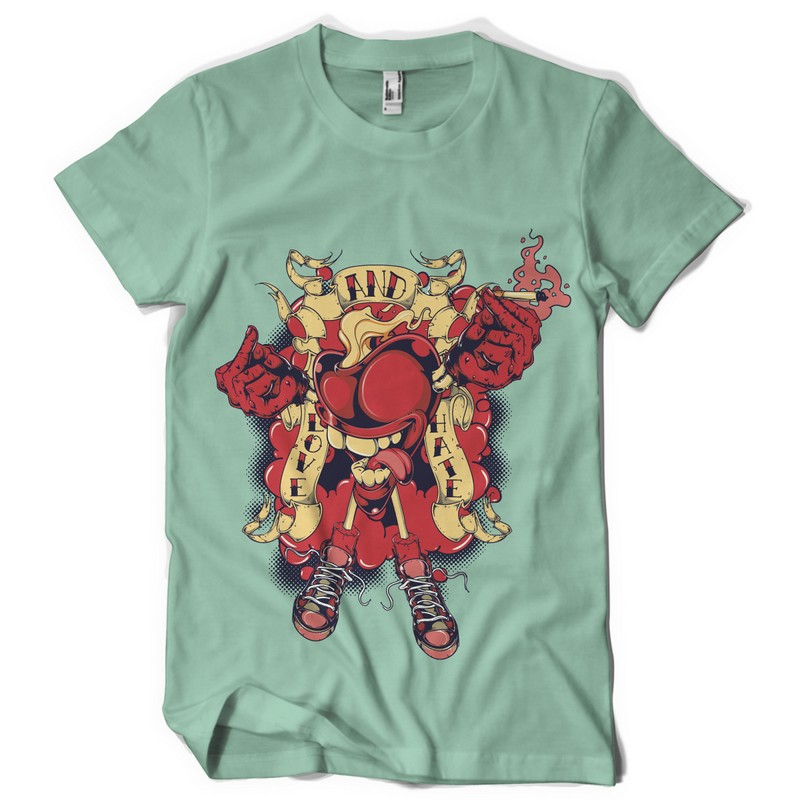 Smokin love digital design template in vector format, featuring detailed smoked heart now available for Adobe Illustrator, Adobe Photoshop and Corel Draw and can be used for digital printing and screenprinting .