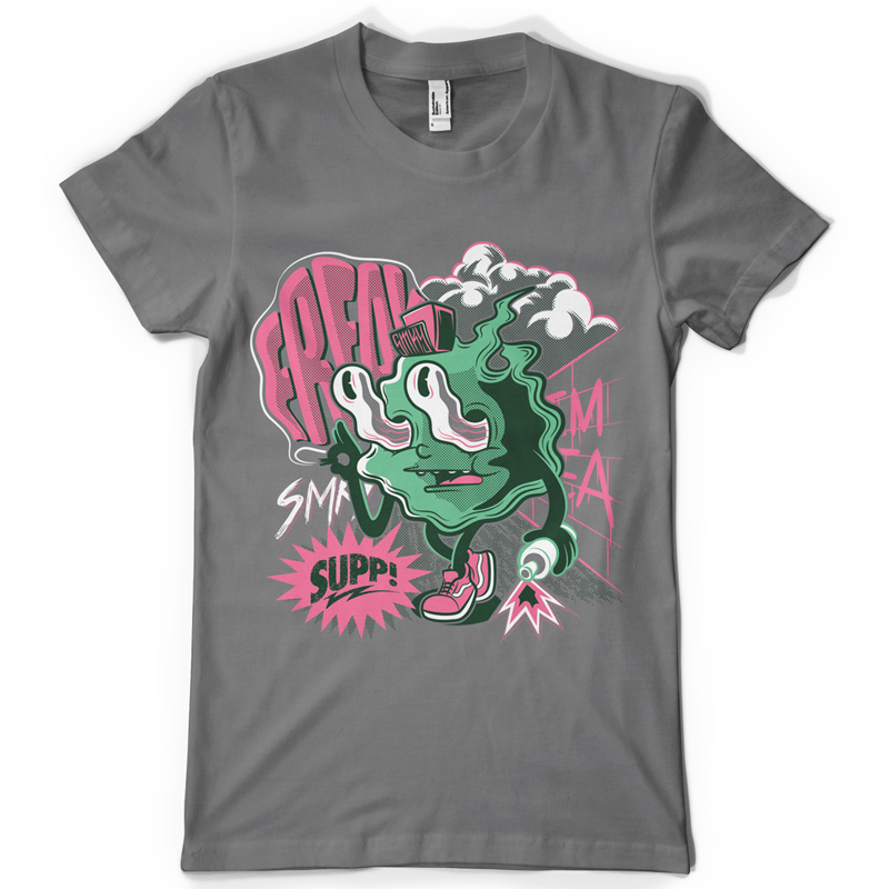 Smoky printed t-shirt features a detailed screen print of creature walking through the city now available for Adobe Illustrator, Adobe Photoshop and Corel Draw and can be used for digital printing and screenprinting .