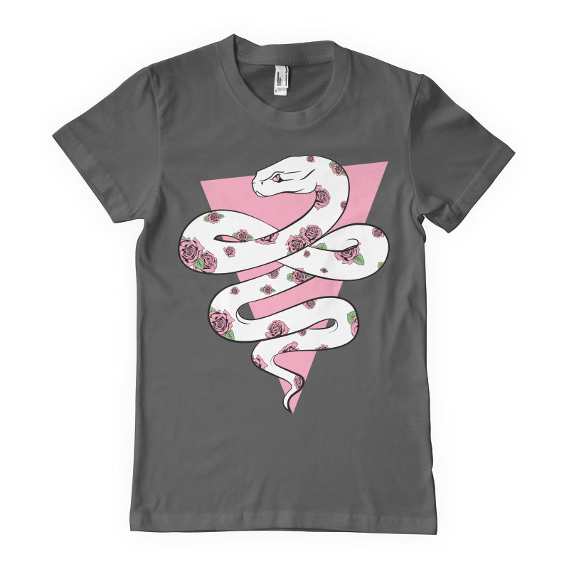 Snake with roses T-Shirt Design. Digital illustration of featuring detailed roses inside a snake.The colors are changeable. The source file is available in AI, EPS, PNG, PSD and SVG format.